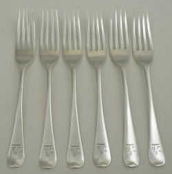 Six 7" Georgian Silver Old English Dessert Forks, WE.WF.WC, London 1811, 178mm, 269g. |