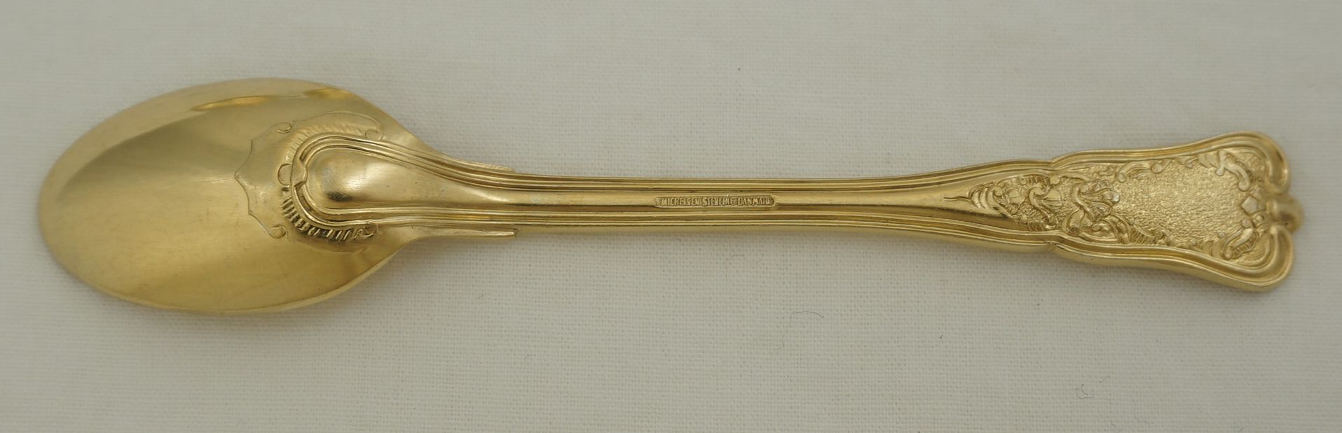 | DESCRIPTION | Cased set of six antique Danish vermeil rococo coffee spoons. Vermeil is pure gold plated sterling silver where the gold is significantly thicker than normal gold plating. |