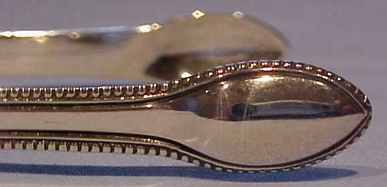 Lovely pair of Georgian silver sugar tongs with bead edge decoration and no engravings or erasure. | |