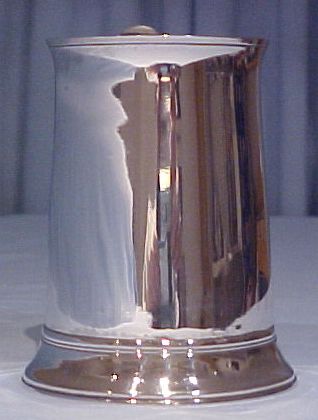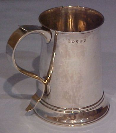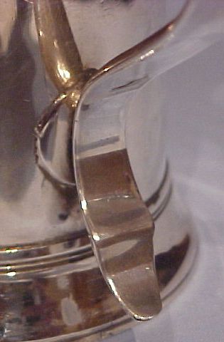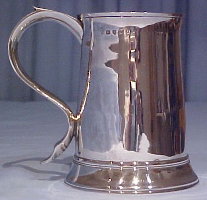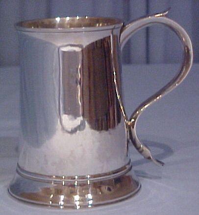 Good Georgian silver tankard with an 'S' scroll handle incorporating a whistle in its base. The idea was that once your tankard was empty you would invert it and whistle for a refill. I have been unable to get the whistle to work so it may be blocked or lost its pea. | ||