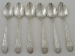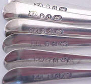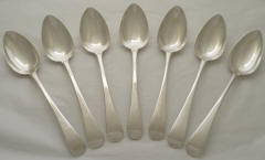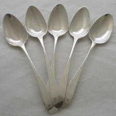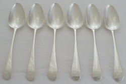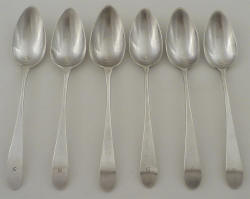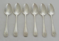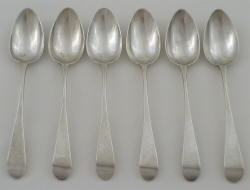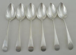 Six 5" sterling silver Old English pattern teaspoons, P&W Bateman, London 1809, 124mm, 71g. |
