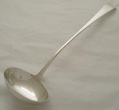 12 ¾" f/e Hanoverian Soup Ladle, London 1774, 153g. |