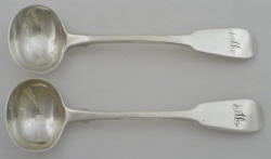 Pair 4 ¼" Fiddle salt spoons, William Bateman I, London 1820, 106mm, 26g. |