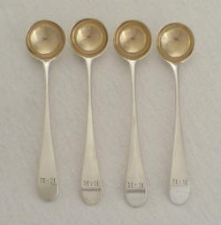 Four 4 ¼" Fiddle salt spoons, William Bateman I, London 1825,