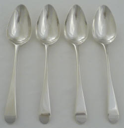 4 ¾" Old English teaspoon, Hester Bateman, London 1762, 119mm, 14g. |