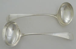Pair 7" OE sauce ladles, London 1830, 102g. |