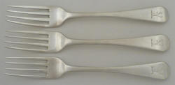 Three 6 ¾" OE forks, William Bateman I, London 1820, 172mm, 125g.