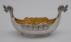 3 ¼" Magnus Aase Norwegian silver Viking boat shaped salt, Bergen, 85mm, 15g. |