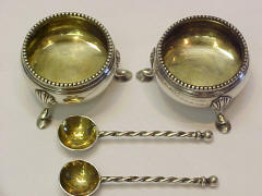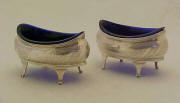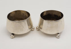 Pair 1 ¾" tub salts on ball feet, Gibson & Langman, London 1886, 44mm, 45g. |