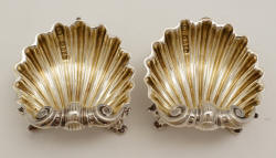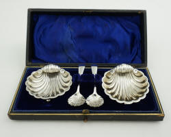 Cased Victorian Silver Shell Salts, Chester 1893, silver 24g. |