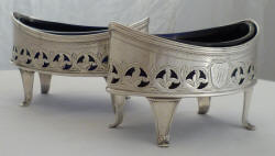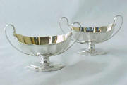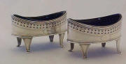Pair 4 ½" pedestal salts, Henry Chawner, London 1791, 118mm, 134g. |