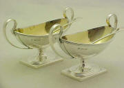 Pair salts + spoons, Fordham & Faulkner, Sheffield 1912, 269g. |