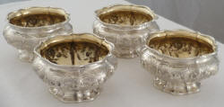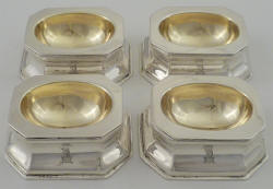 Four 1720s style silver gilt octagonal trencher salts, Nathan & Hayes, Birmingham 1892, 77mm, 245g. |