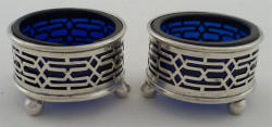 Pair with blue glass liners, Gs&Ss, London 1922, 60mm, silver 71g. |