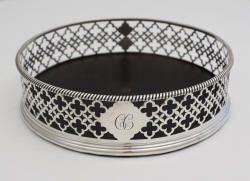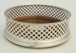 5 ¾" pierced 'large type bottle/decanter coaster', Edward Lowe, London 1775, 148mm, total 200g.