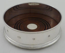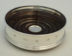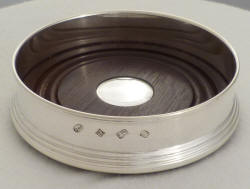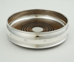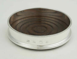 4 ¾" wine bottle coaster with ebony base, London 1768, 120mm. |