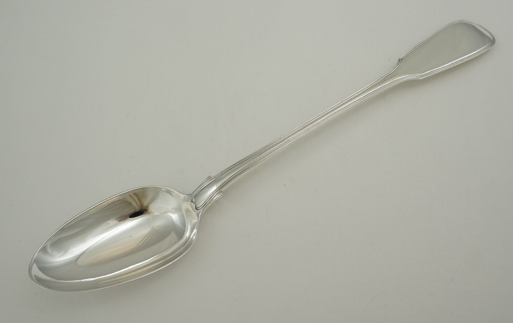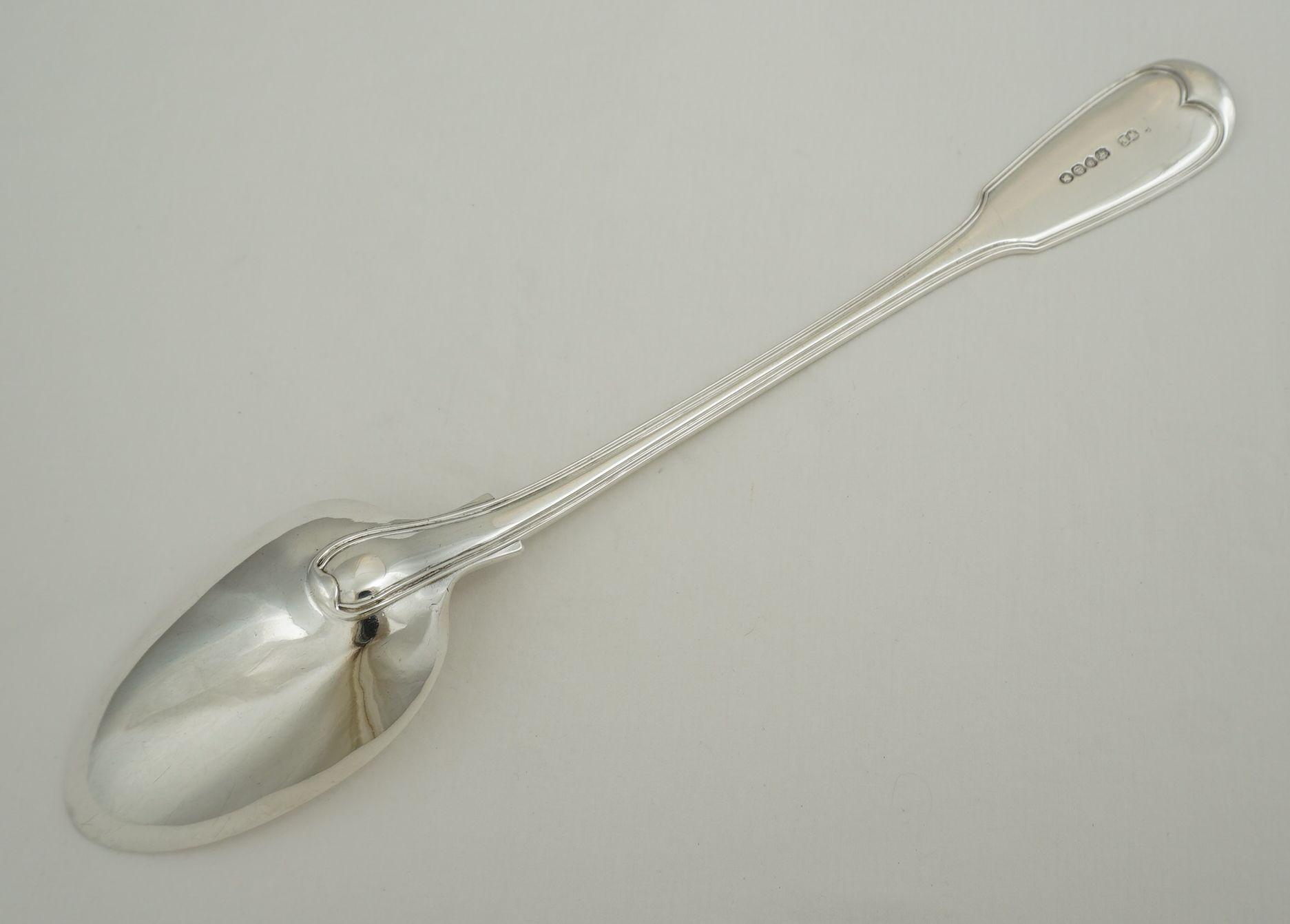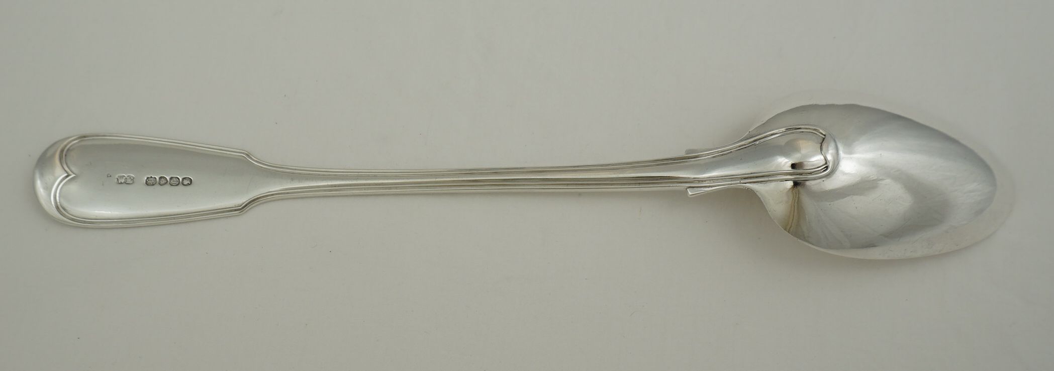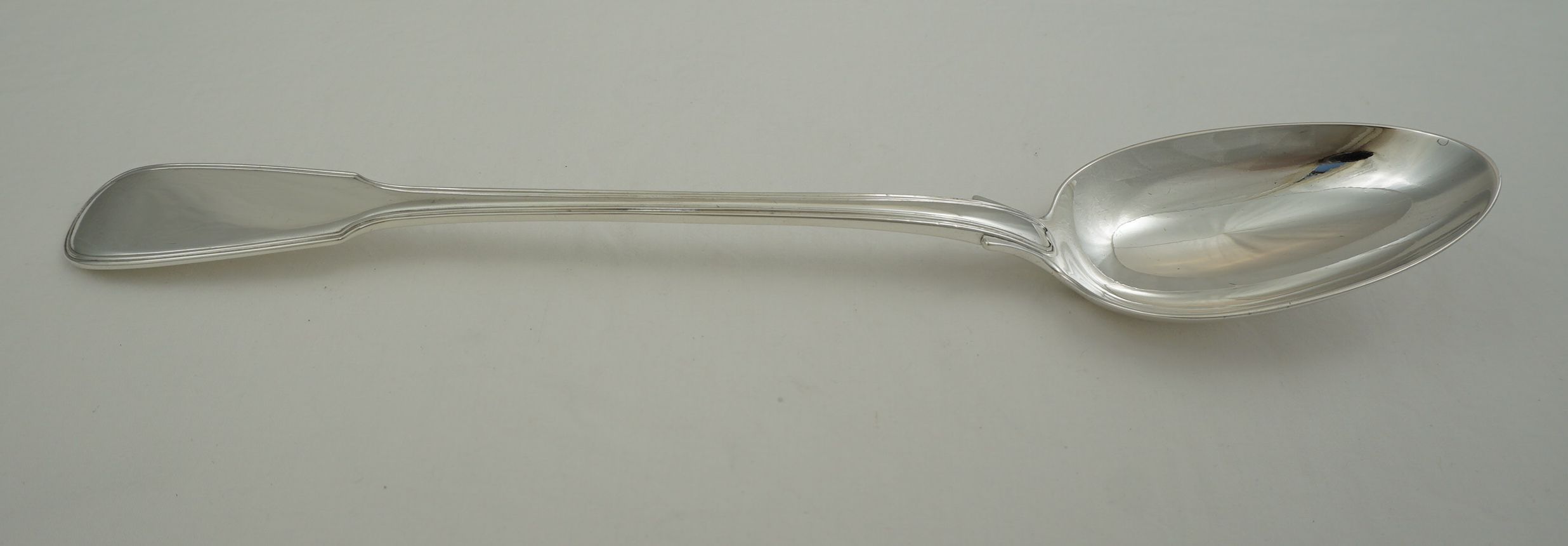 | DESCRIPTION | Heavy antique English early Victorian solid sterling silver double struck (pattern on both sides) Fiddle & Thread pattern basting spoon with no engraving. |