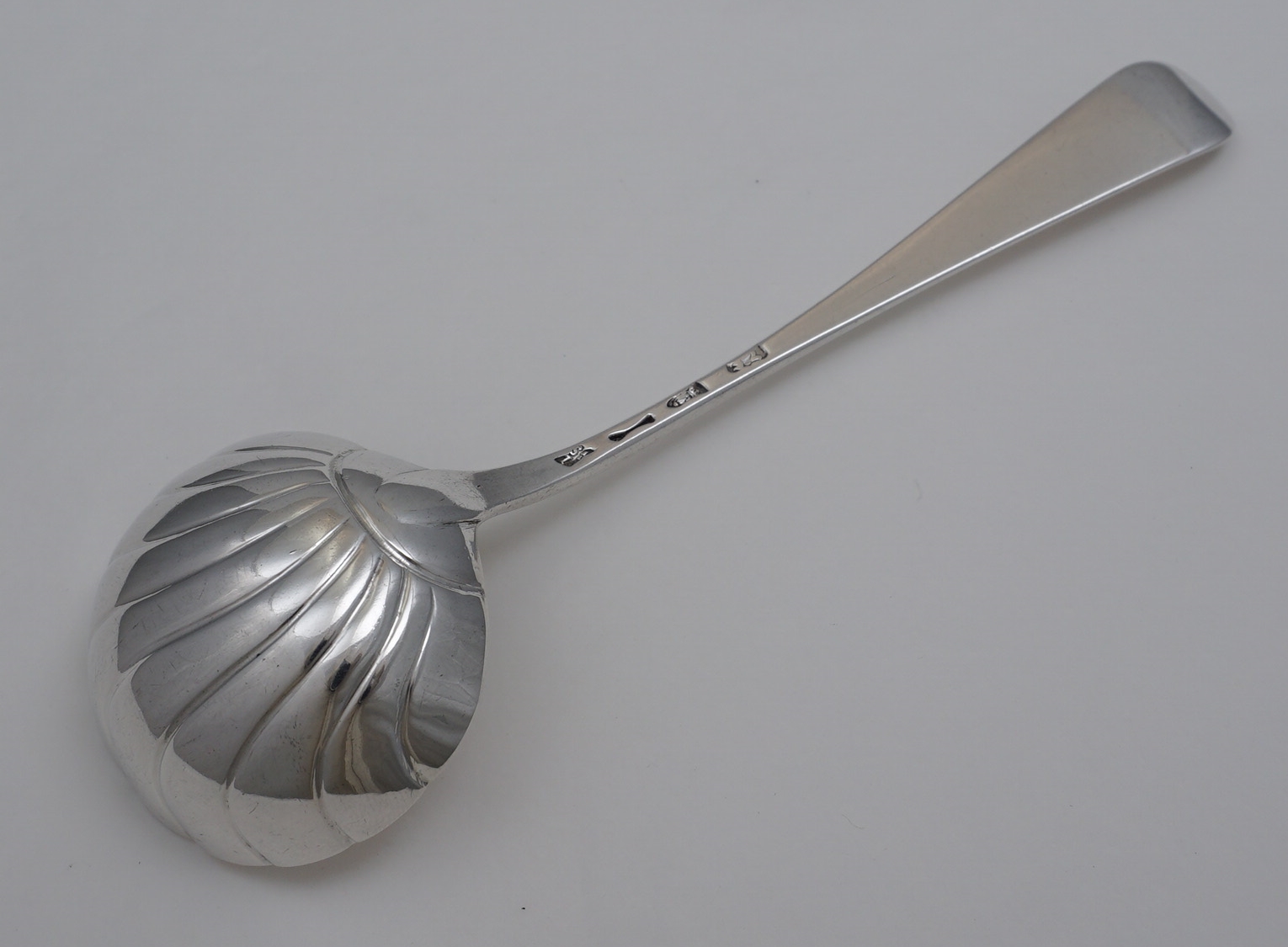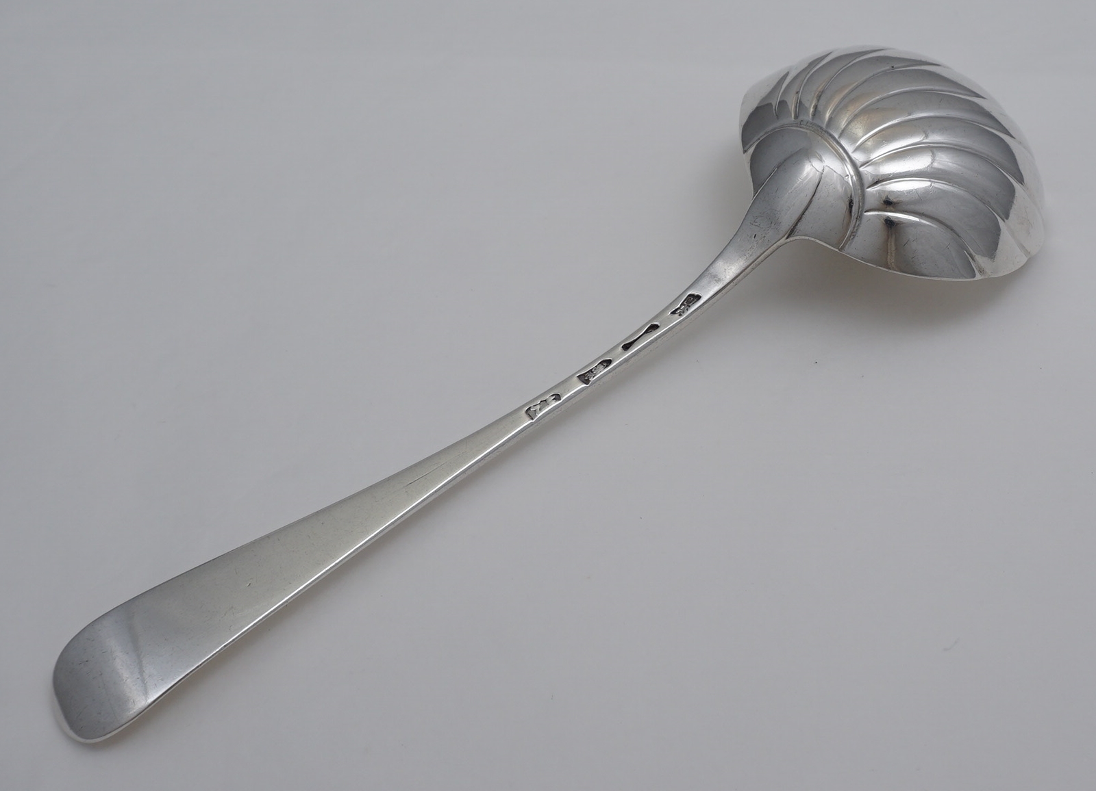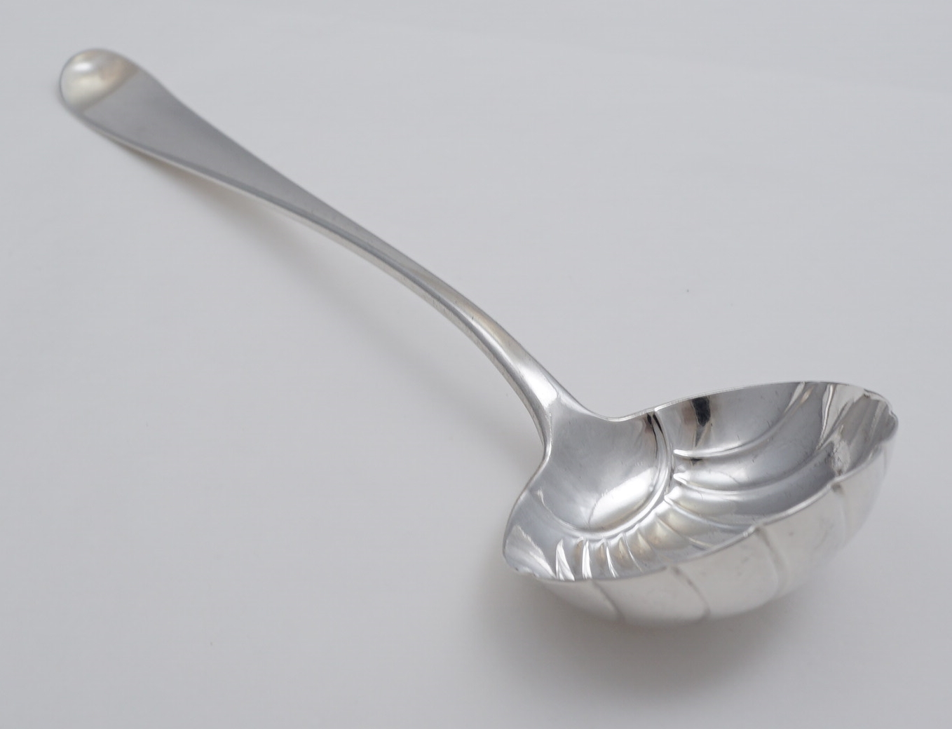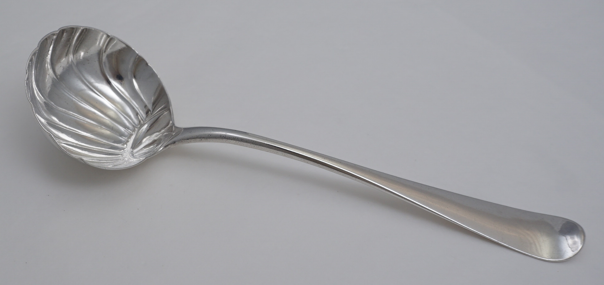 DESCRIPTION | Antique English Georgian solid sterling silver Hanoverian pattern sauce ladle with no engraving or erasure. |
