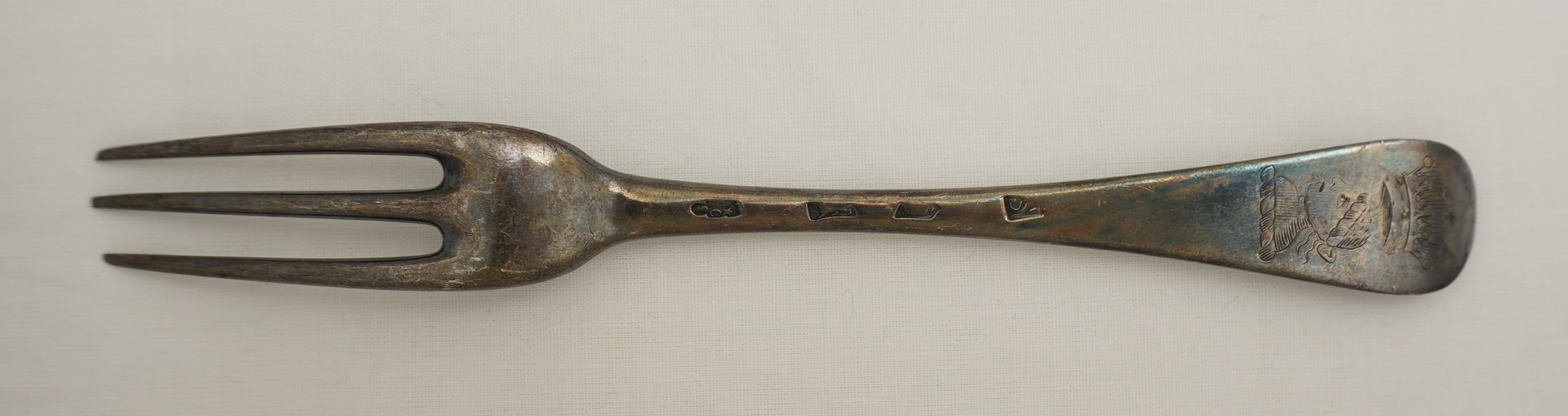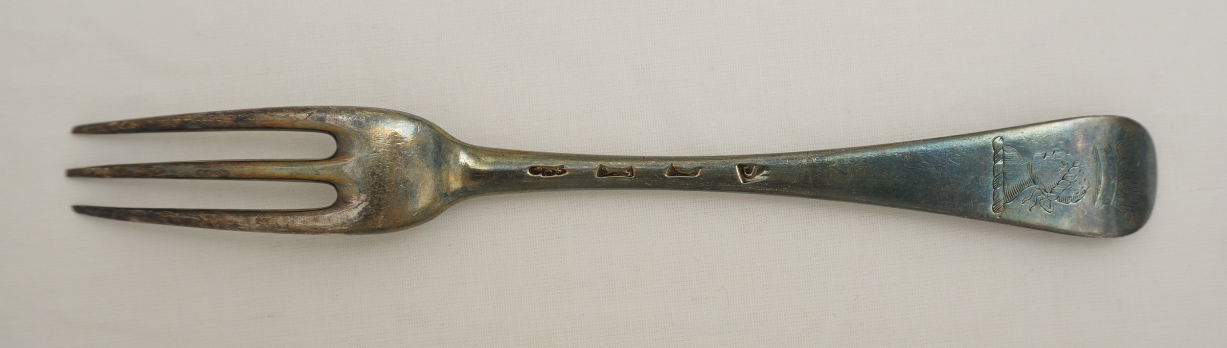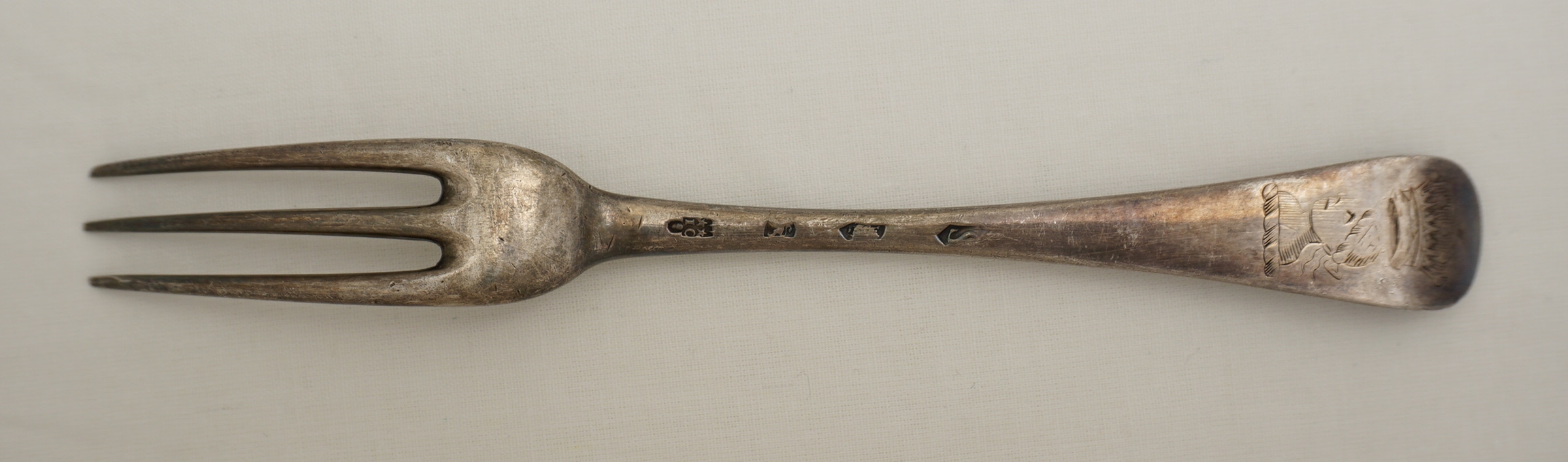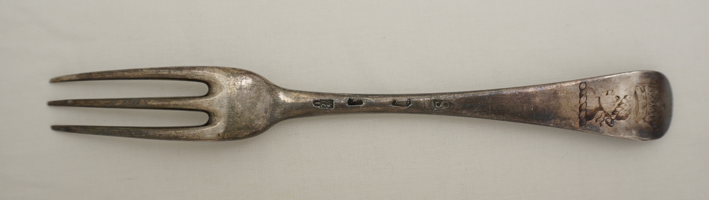 (I, 1622) (archive.org) As fork tines wear it is important to level them by clipping or stretching otherwise the wear is amplified on the shortest tines. The old silversmiths made their tines extra long to accommodate the expected levelling. After successive levelling the tines look stubby, the forks have reached the end of their useful life and are usually scrapped. This is why old forks are so rare today and even the stubby are becoming acceptable as good examples are seldom available. What makes this set so extraordinary is that although a little wear can be seen on some outer tines the rest are their original full length. If you are interested in acquiring similar forks, and you probably are if you have read this far, you are welcome to supply an indication of your budget and I will add you to the wait list. These took eight years to find so I can make no promises. |