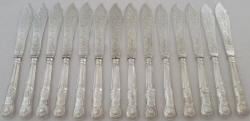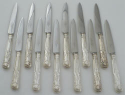 Twelve (6 tables + 6 desserts) silver handled knives, JB Chatterley, Sheffield 1971, total 730g.