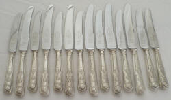 Twelve high quality (6 tables + 6 desserts) silver handled knives, Elkington & Co, Birmingham 1961, total 904g.