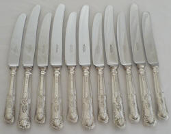 Twelve (6 tables + 6 desserts) Queen's pattern silver handled knives, John Biggin, Sheffield 1989, total 782g.