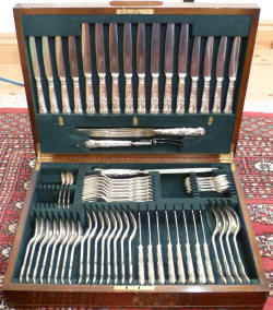 Canteen, Queen's pattern, Roberts & Belk, Sheffield 1973, total approximately 8500g, silver about 3500g. |