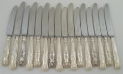 Sixteen (8 tables + 8 desserts) silver handled knives, JB Chatterley, Sheffield 1971, total 1001g.