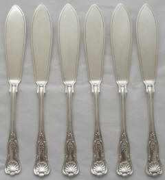Six 10 ½" Francis Higgins, London 1850, total 513g. |