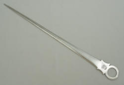 13 ¼" rectangular cross-section silver meat skewer, Thomas Chawner, London 1773, 339mm, 116g. |