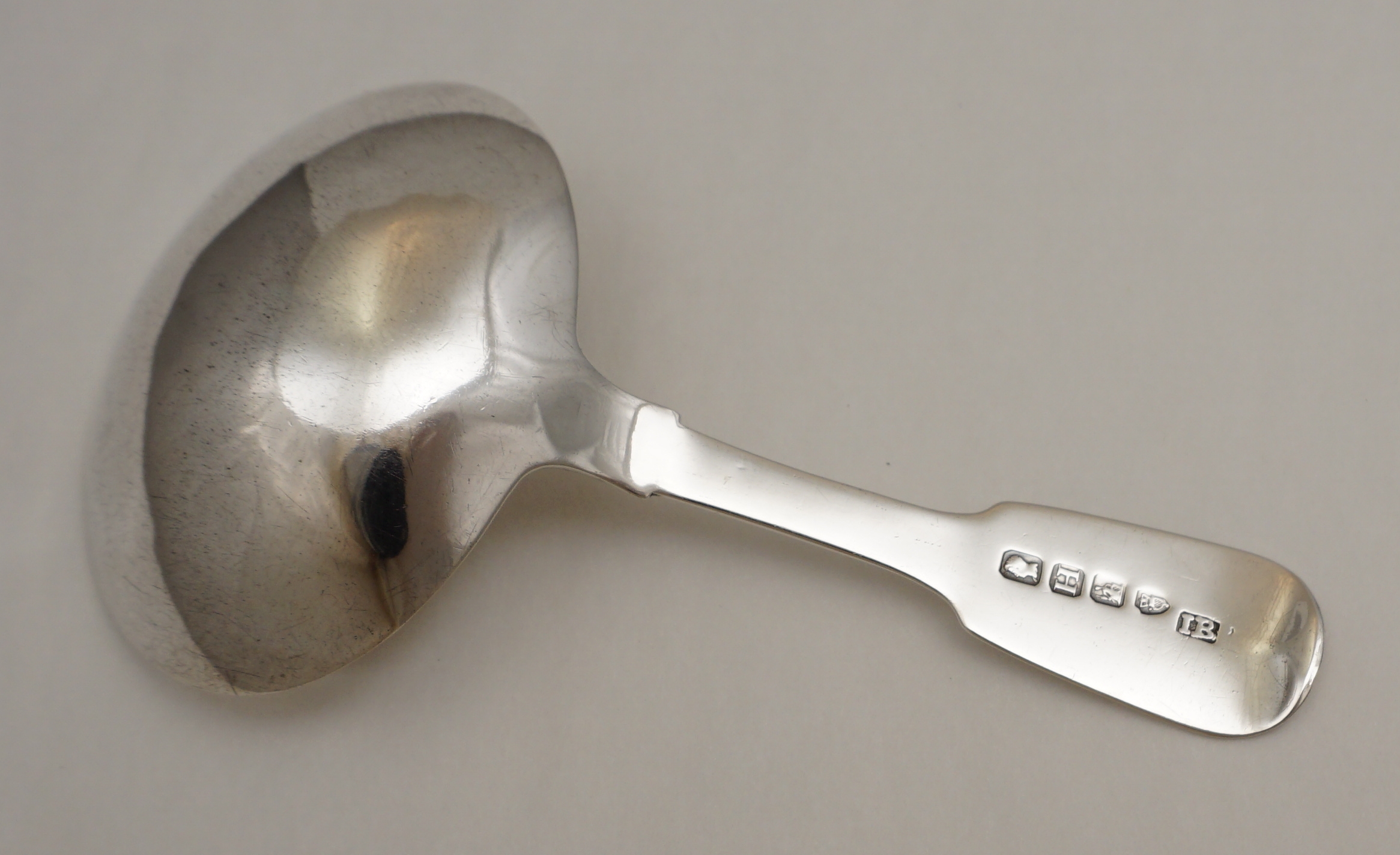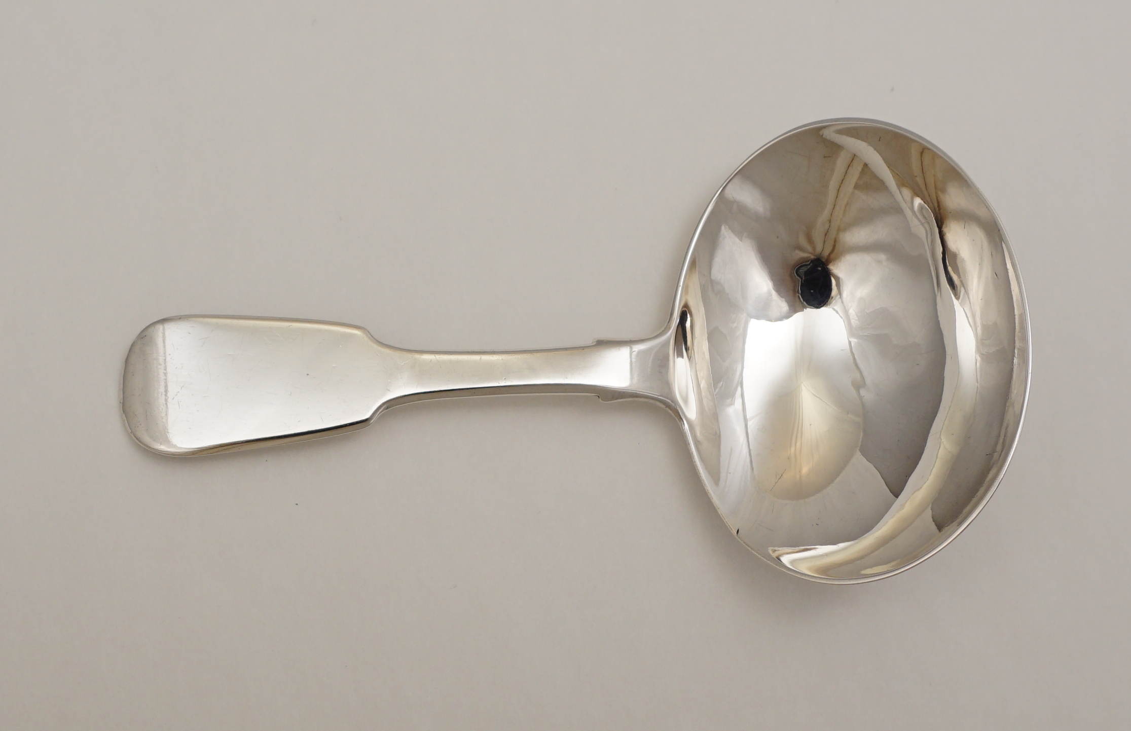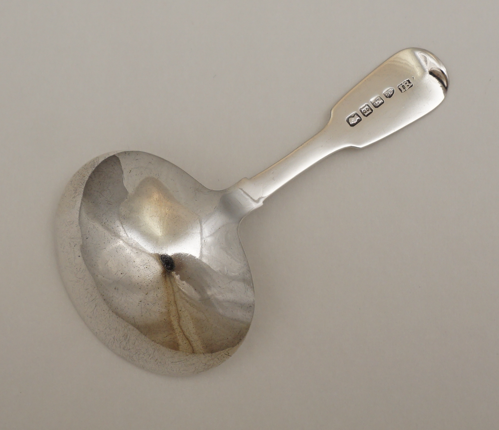 DESCRIPTION | Very good antique Irish Georgian solid sterling silver Fiddle pattern tea caddy spoon with a generously wide bowl, no engraving or erasure and clear, well-struck hallmarks. |