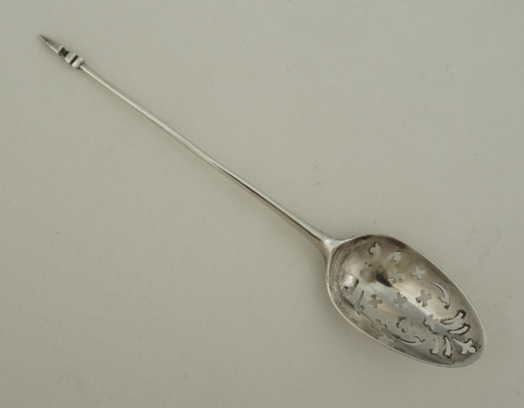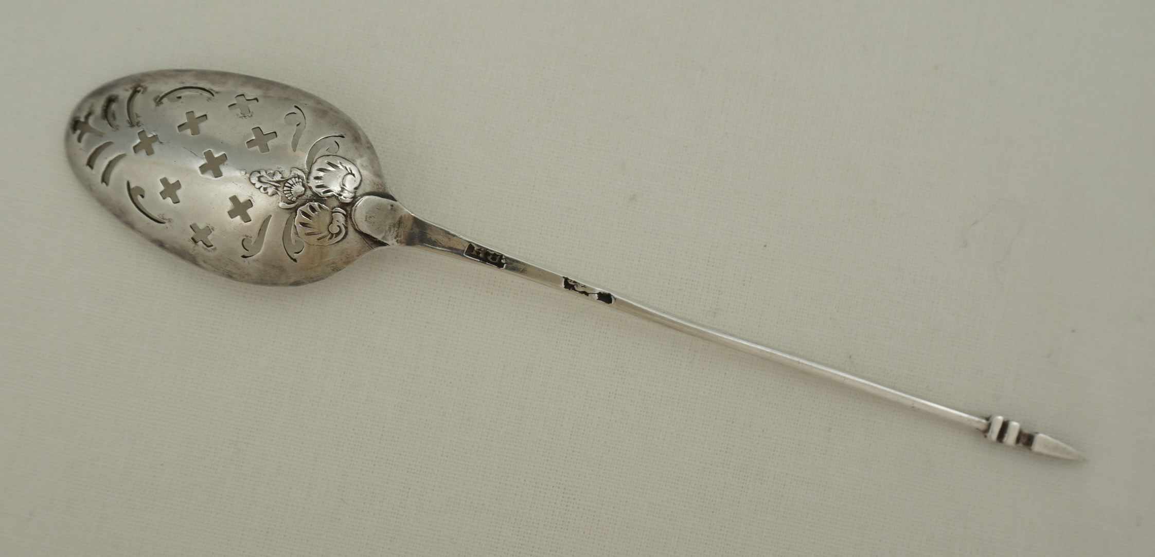 | DESCRIPTION | Scarce antique English Georgian solid sterling silver fancy back mote spoon in fantastic original condition and exceptionally good hallmarks for this type of item. |