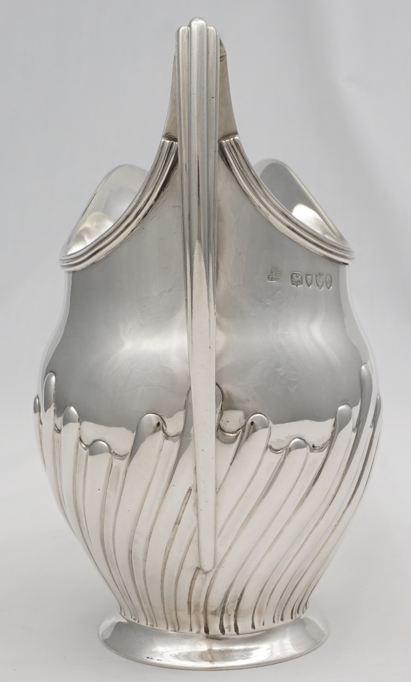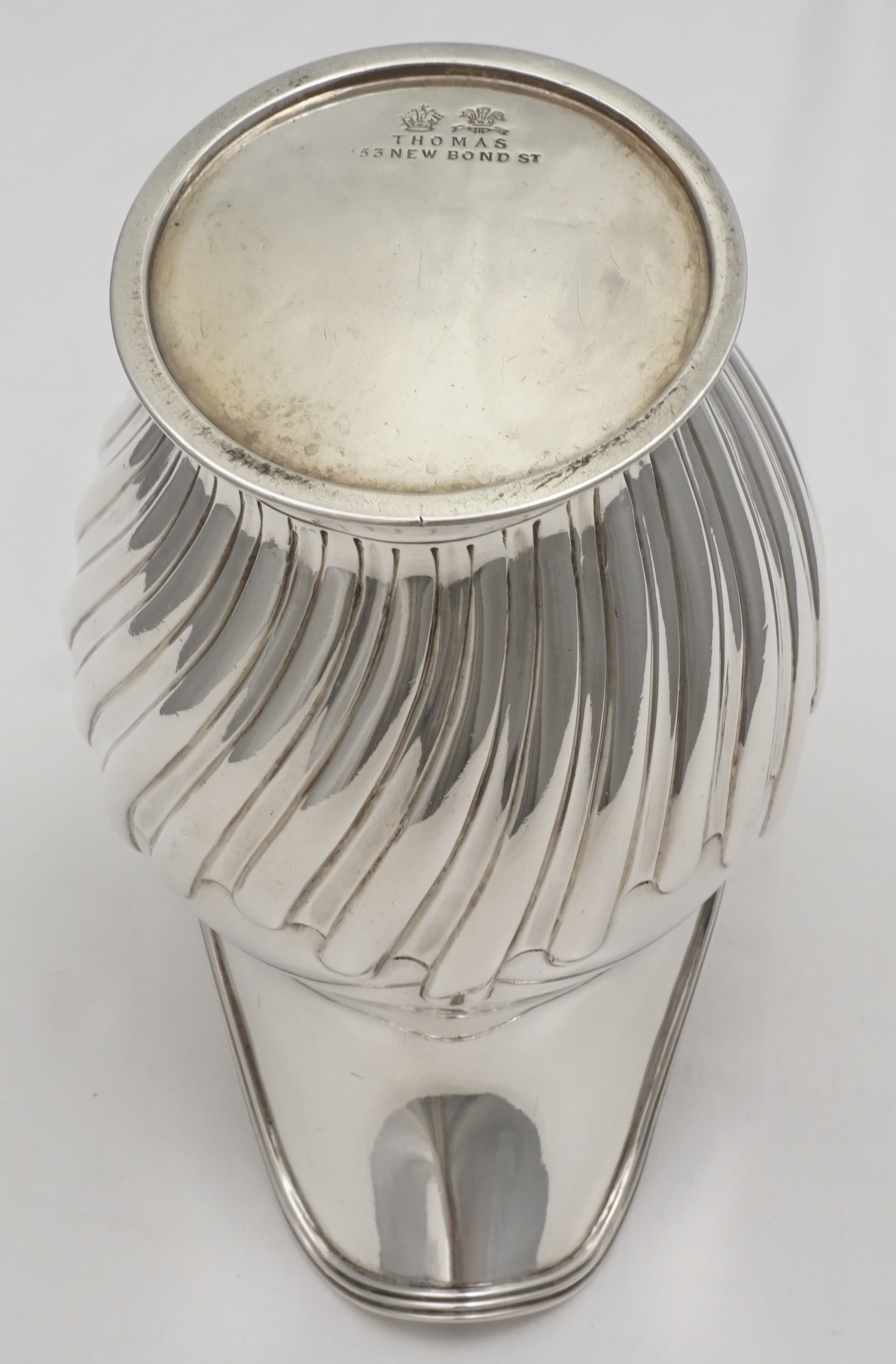 | DESCRIPTION | Antique English Victorian solid sterling silver milk jug with fluted decoration. Retailed by Thomas of 153 New Bond Street, London, a high end establishment of the period. |