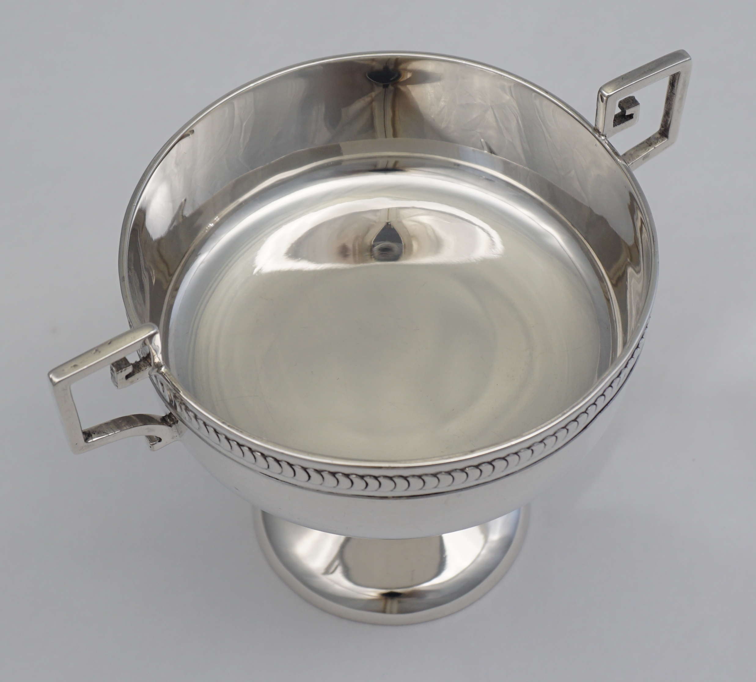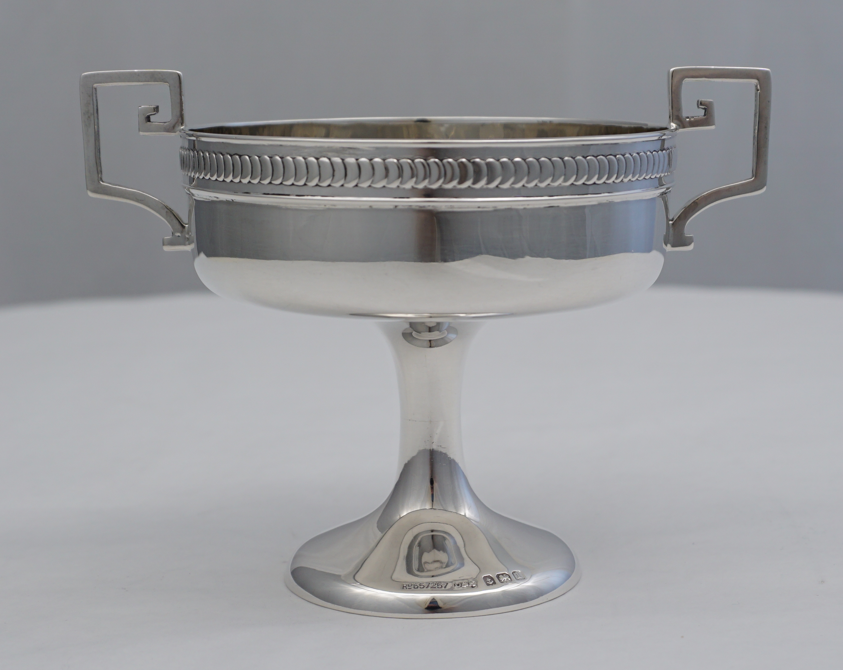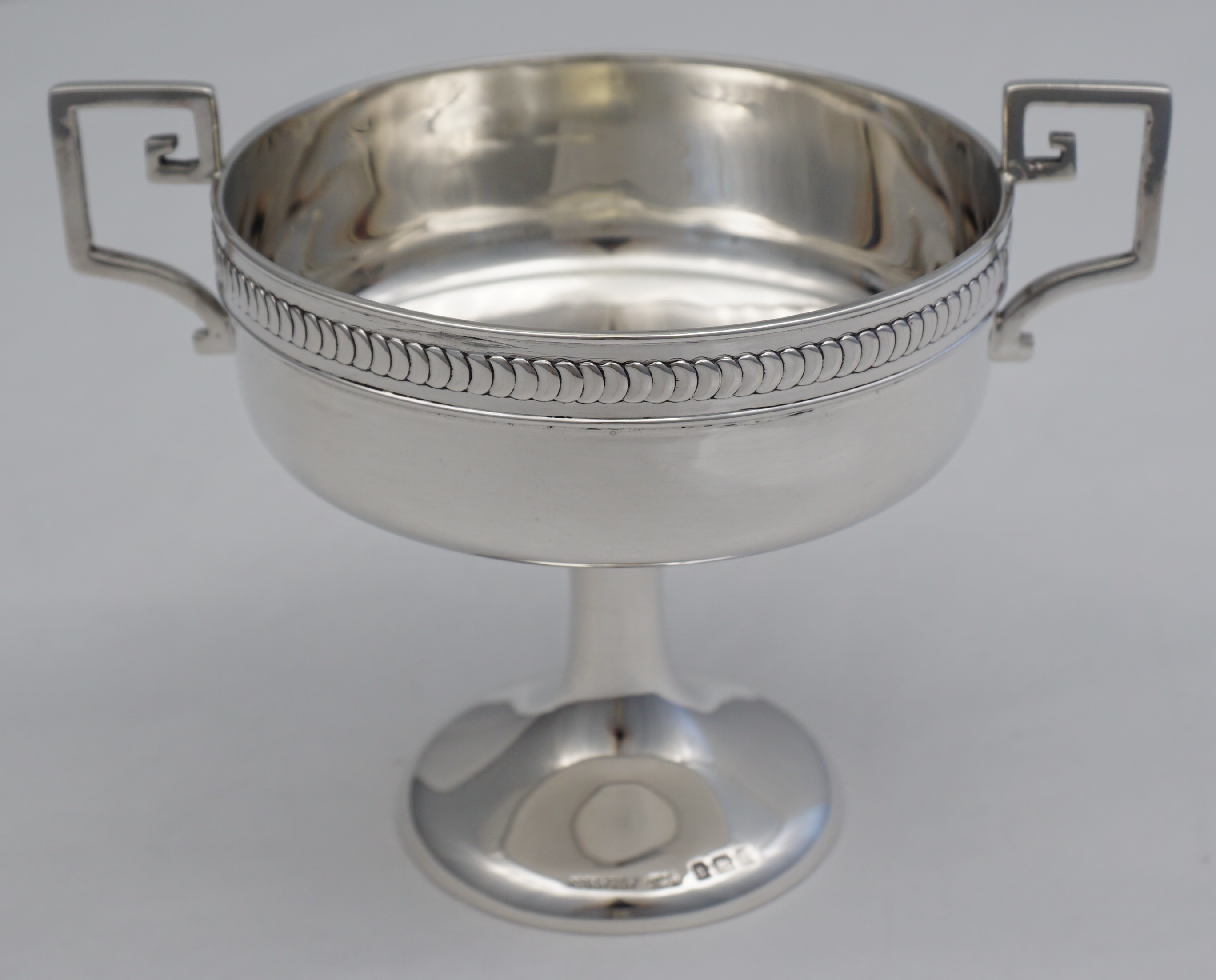 | DESCRIPTION | Vintage English solid sterling silver two handled pedestal cup. |