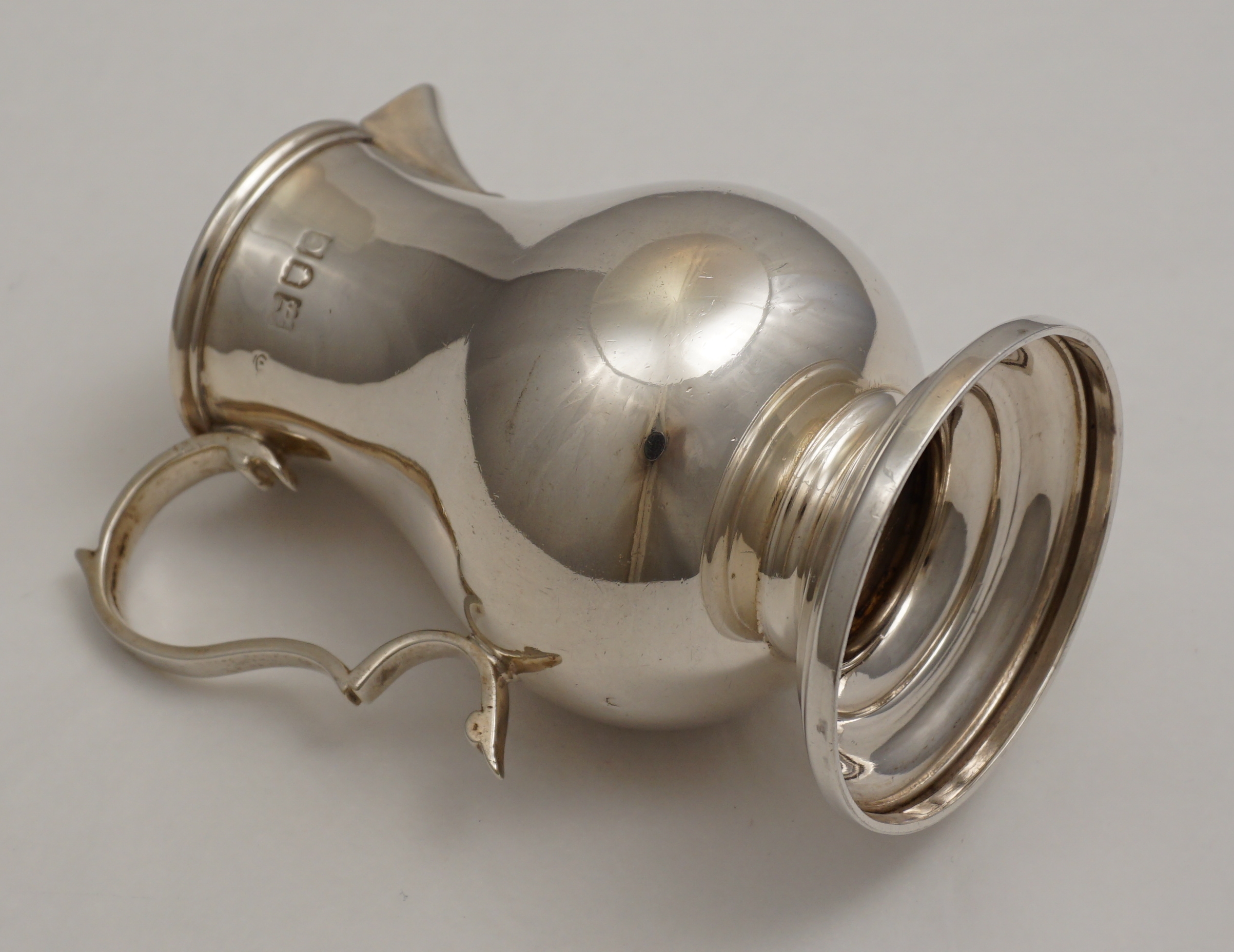 | DESCRIPTION | Very good Victorian solid sterling silver reproduction of a George II sparrow beak cream jug with no engraving or erasure. |