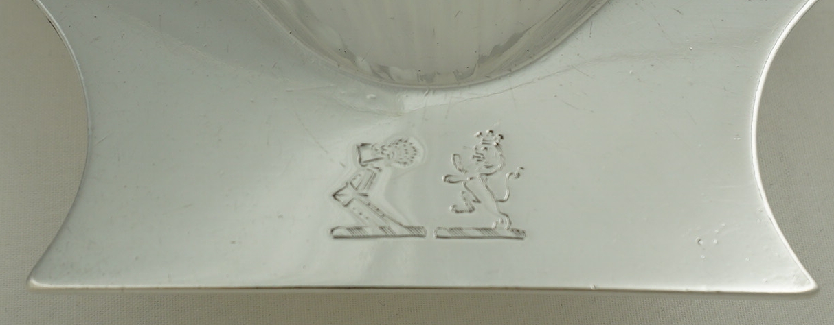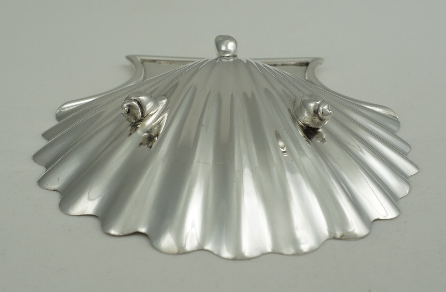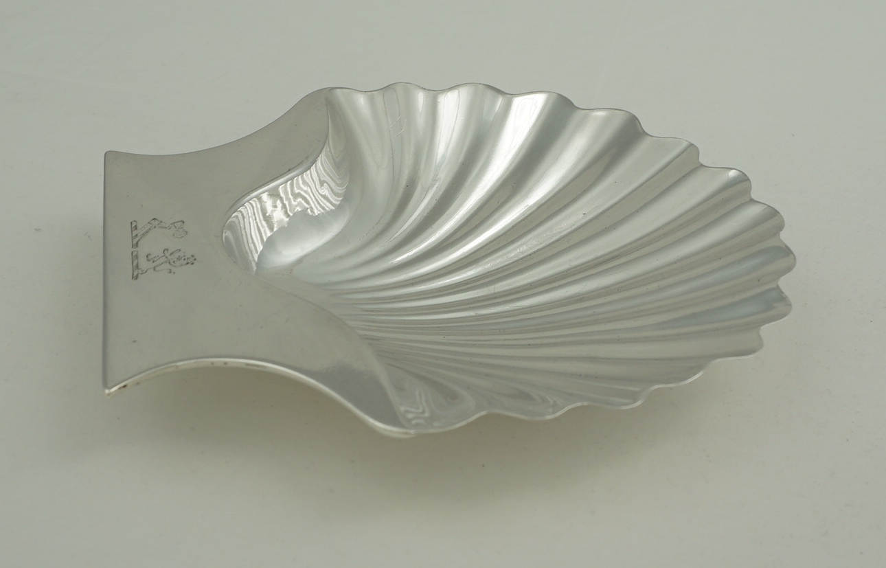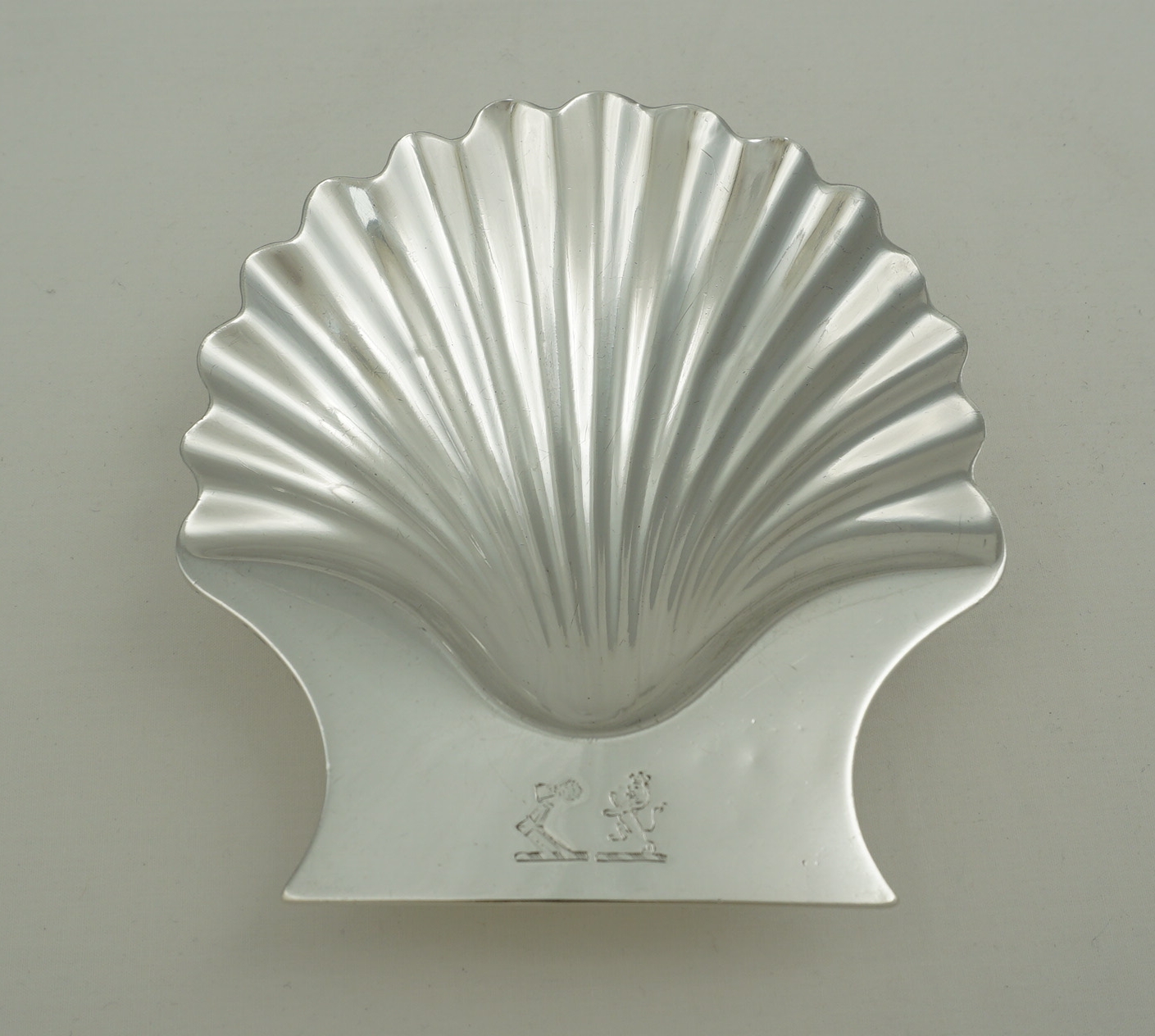| DESCRIPTION | Good quality and hefty English Georgian solid sterling silver butter shell on three shell feet and with a double crest engraving. |