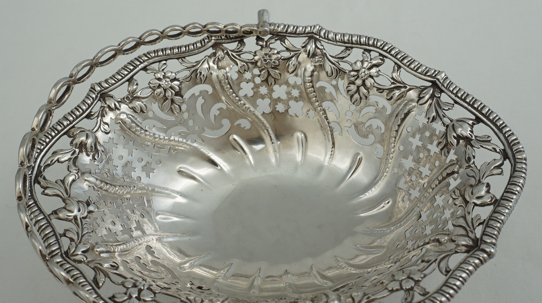 SILVERSMITH | Thomas Foster, specialist maker of pierced baskets. The 'F' is very rubbed but Thomas's 'T' and position of pellet are distinctive. |