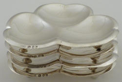 Eight 2 ½" stackable little dishes, London 1957/8, 64mm, 153g. |