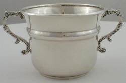 6 ½" porringer with serpent handles, Martin Hall, Sheffield 1922, 136mm, 158g. |
