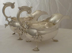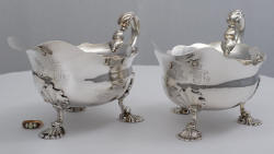 Pair 7" rococo sauce/gravy boats, Hugh Mills, London 1749, 650g. |