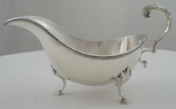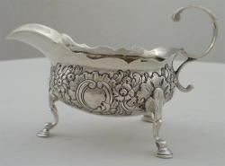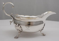 6 ½" Georgian sterling silver sauce boat, Walter Brind, London 1759, 163mm, 193g. |