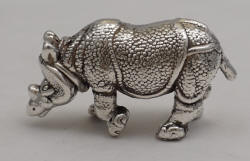 2" nicely detailed vintage cast German silver animalier of Rhinoceros unicornis, 52mm, 29g. |