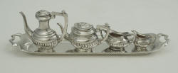 Miniature five piece tea and coffee set, Richards & Knight, London 1974, 149mm, 69g. |
