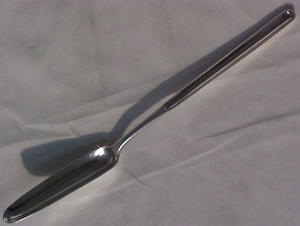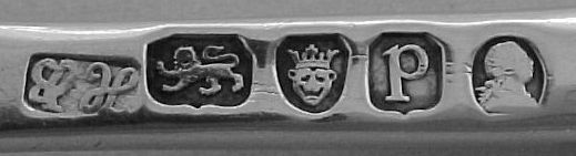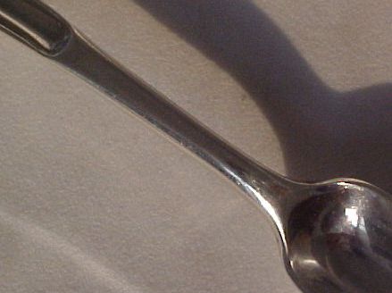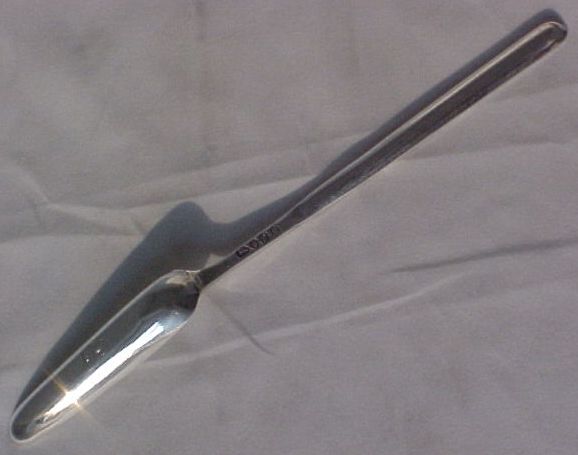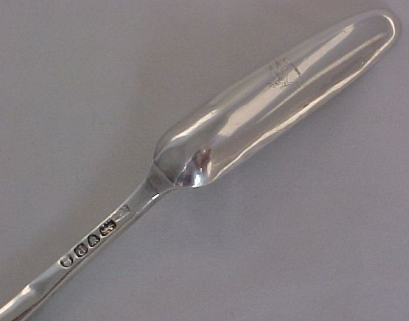 Georgian silver marrow scoop with a crest and long drop to the back of the beef bowl, also with the benefit of exceptionally well struck and clear hallmarks. | ||