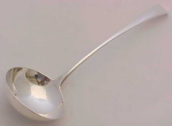 Large Georgian silver Old English pattern soup ladle with a simple initial engraving verso and circular bowl. |