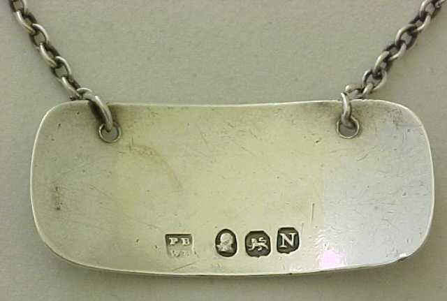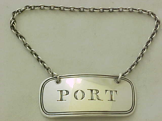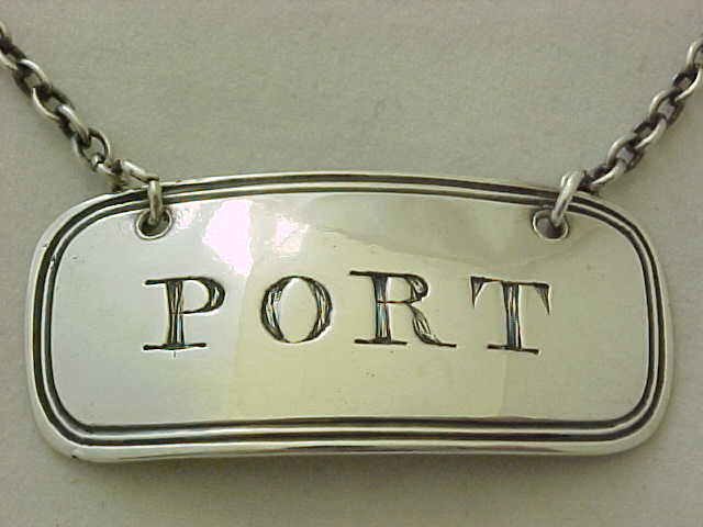 Georgian silver PORT bottle label with a thread decorated border and suspension chain. |