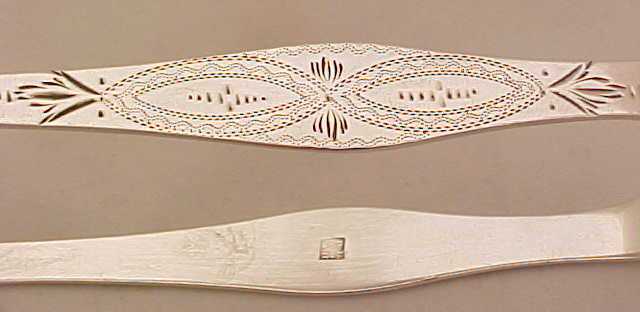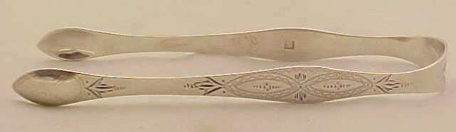 Georgian silver sugar tongs with pretty bright cut decoration to the arms. |