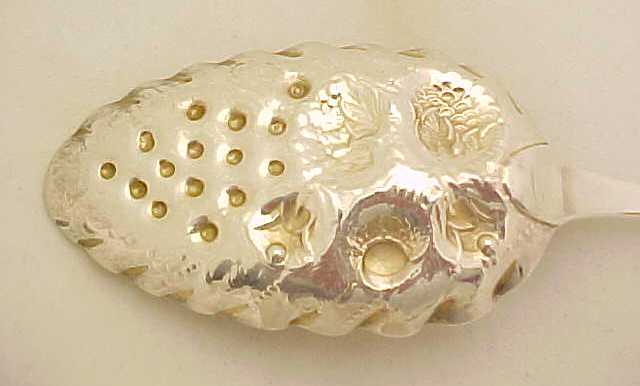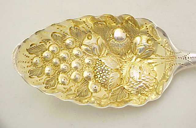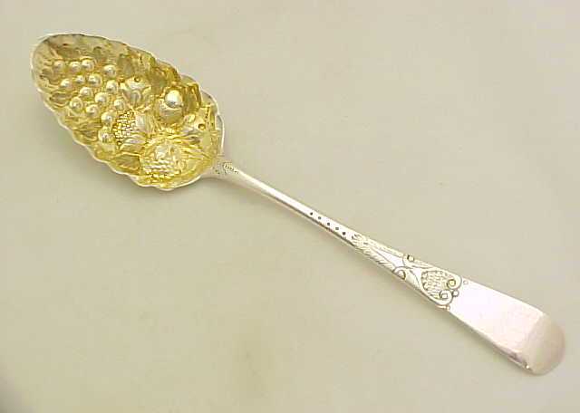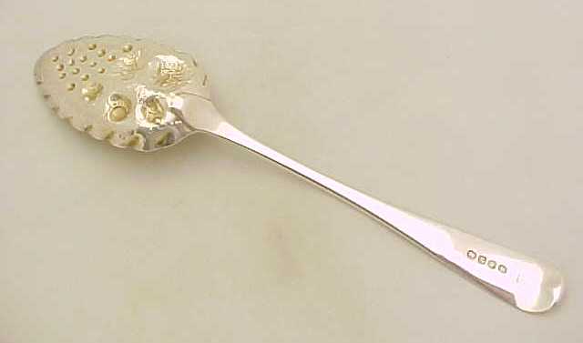 Good Georgian silver Old English pattern table spoon with later decoration and gilded bowl. |