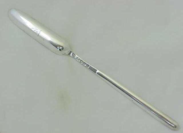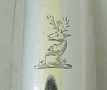 Good Georgian silver marrow scoop with a very long drop and a stag crest to the back of the beef bowl. |