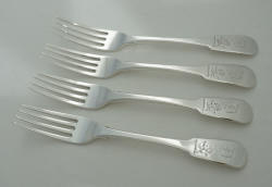 Four Fiddle Table Forks, William Bateman, London 1824, 272g.